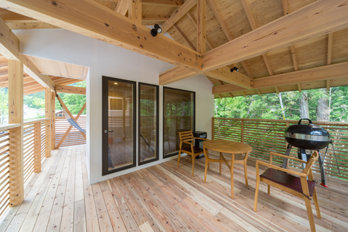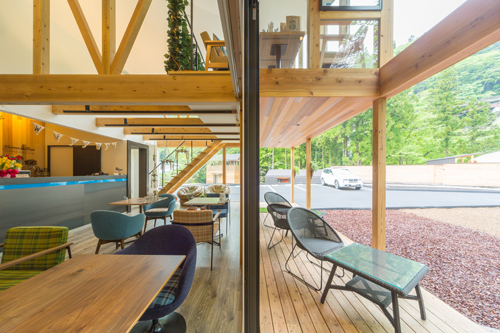 レストラン棟からは、敷地全体を確認でき豊かな山々を見て聞いて感じることができる。