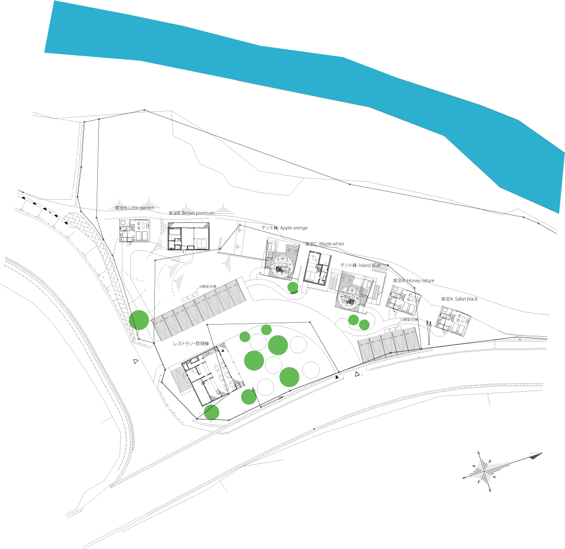 ・大自然を満喫する独立した客室に重きを置いた配置計画