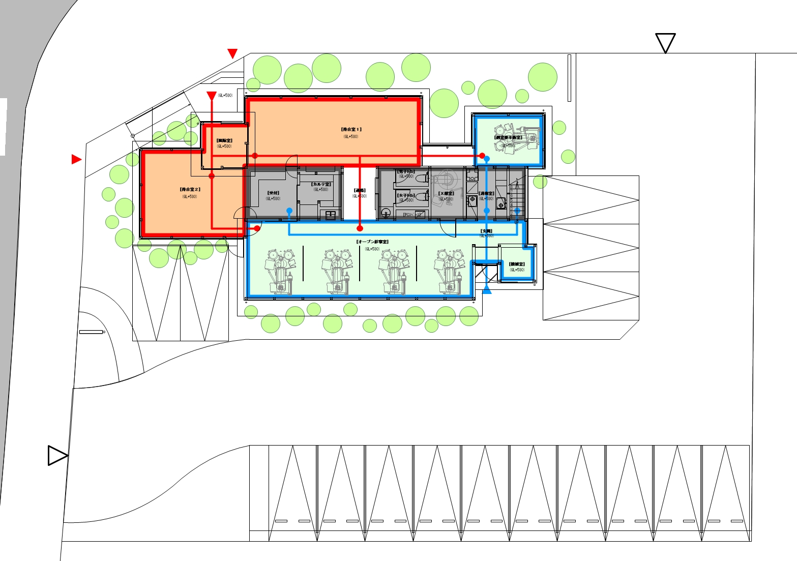 再開発によって新たなコミュニティが形成されようとしている当該地域に新しい歯科医院がどのように地域の人々に受け入れられるべきか、接客や技術によってお客様を満足させることはもちろん、より身近に歯科医院を感じてもらえないだろうか。近年の歯科医院は虫歯治療の枠組みを超えて予防や矯正、クリーニングなど日常となり我々の生活の一部に入り込んでいます。